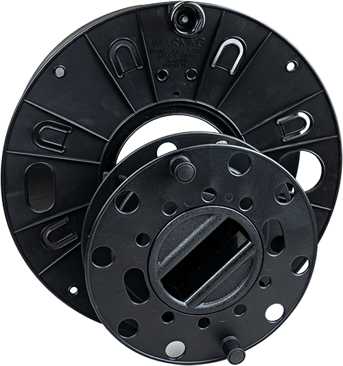 The reels are made from Impact Copolymer Polypropylene with ABS centres and very light weight (large reel - 785gms, small reel - 375gms).