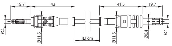 The Electro PJP 2020 is a Straight 4 mm Banana (male) Plug to Straight 4 mm Banana (female) Socket