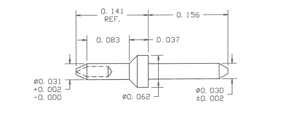 Designed for mounting in a 1.57 mm (.062") thick PC board with a 0.89 mm (.035") diameter hole