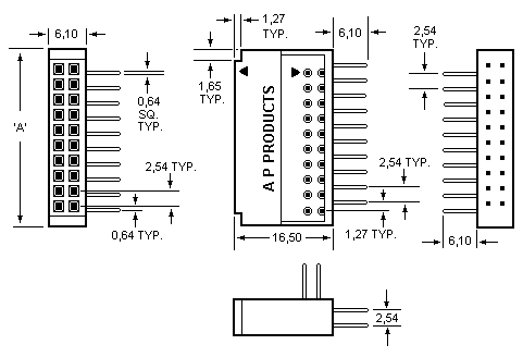 The Intra-Connector systems mates in-line with standard double row socket connectors. It has one set of female contacts, and two sets of male contacts at right angles.