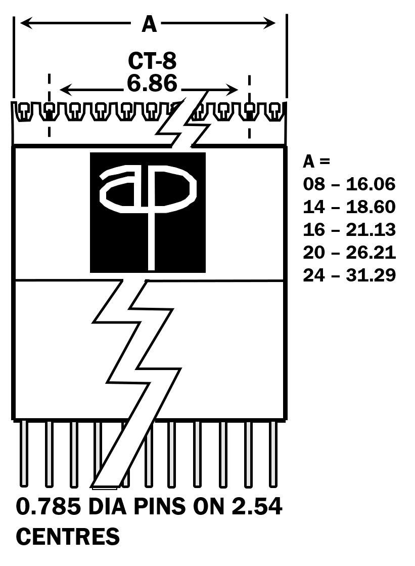 8 Pin DIL Test Clip 0.3" (7.62mm) with Knife Edge Pin Contact.