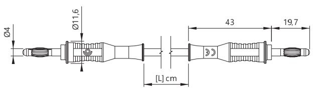 The 2019 patch lead is a Straight 4 mm Banana (male) Plug to Straight 4 mm Banana (male) Plug