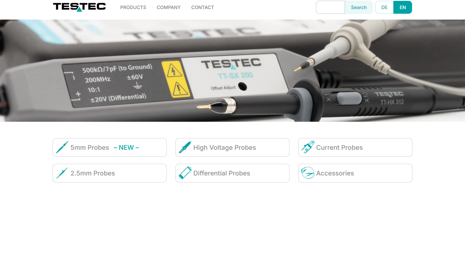 Testec test and measurement distributor Warwick Test Supplies stock a wide range of Testec products. Browse standard probes, passive probes, active probes, oscilloscope probes and differential probes. Shop premium electrical test and measurement equipment from Testec.